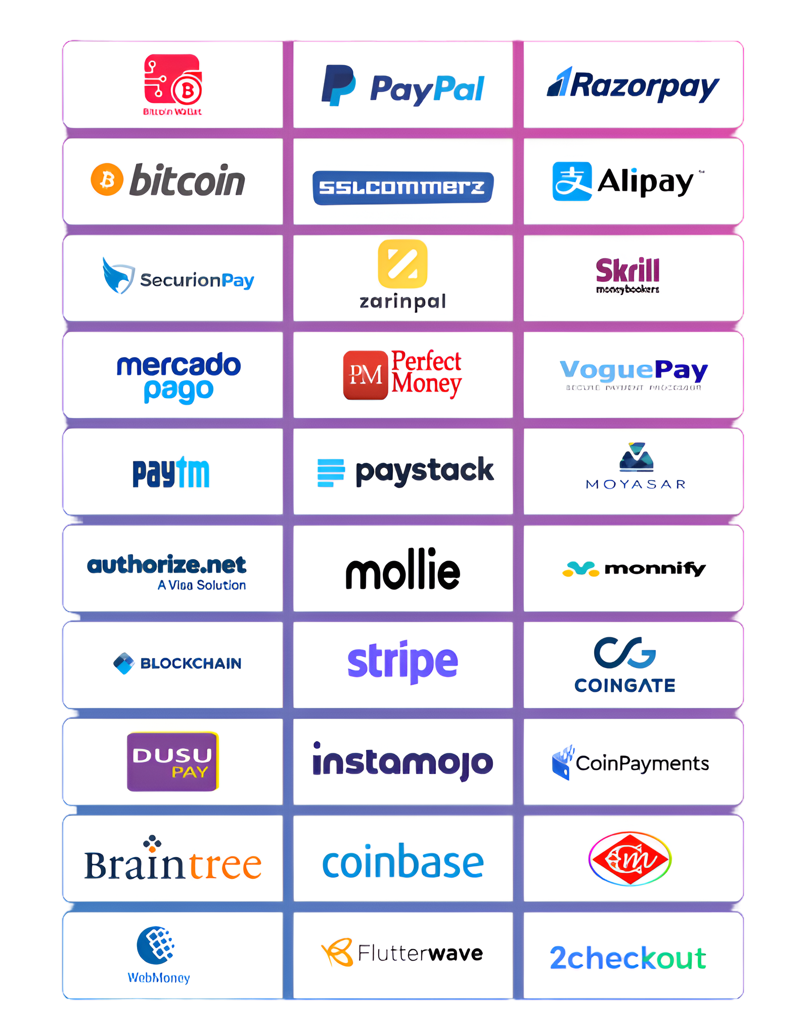 supporting both fiat and cryptocurrency transactions. Accept online and offline payments for subscriptions and one-time purchases.
